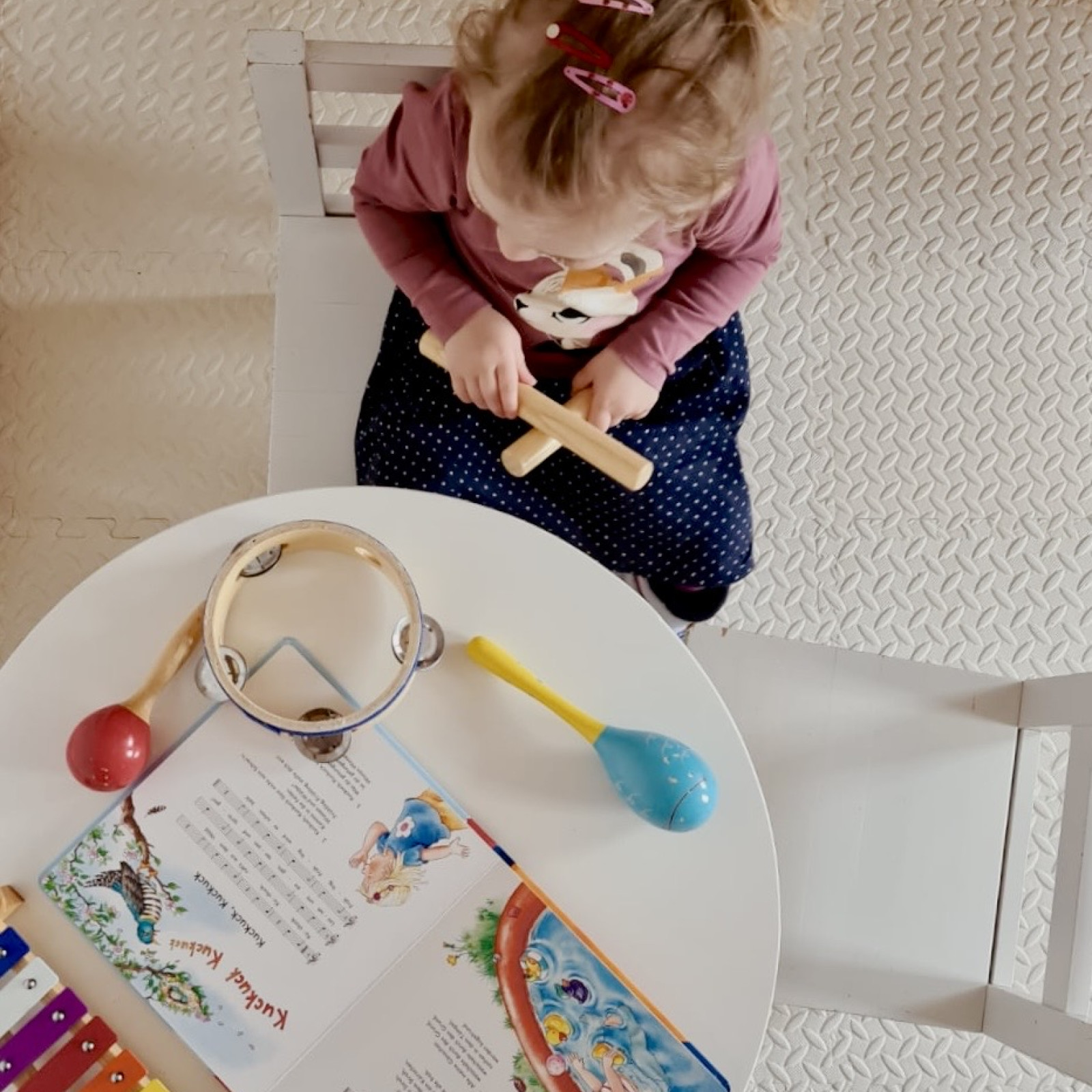 - musikalische Früherziehung: singen, tanzen, mit kleinen Instrumenten musizieren