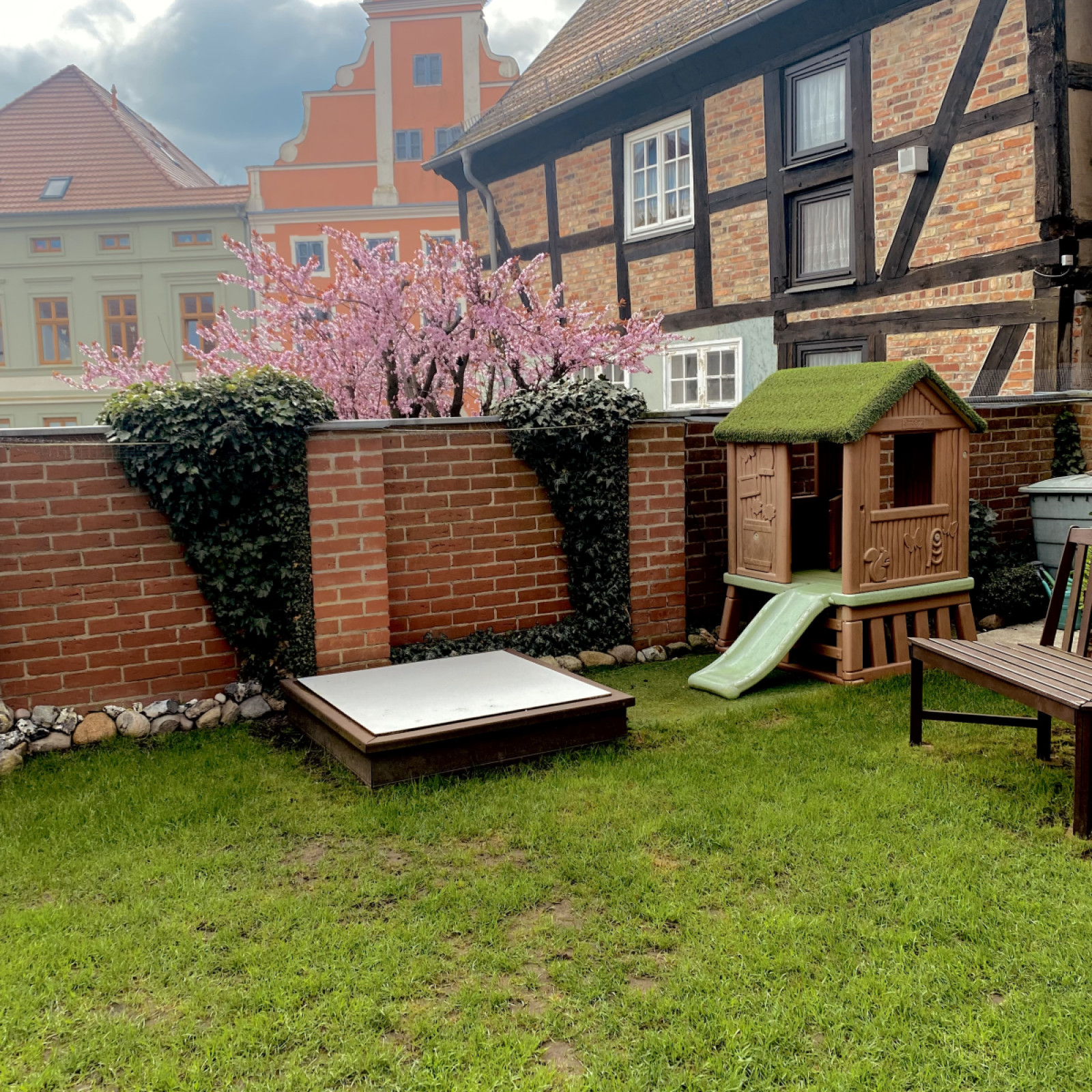 Die Kleinen haben ausreichend Spielmöglichkeiten und Platz, Ihrem natürlichen Spiel- und Bewegungsdrang gerecht zu werden. Hierzu zählt selbstverständlich auch unser hauseigener Innenhof, in dem sich, je nach Wetterlage, die Kinder austoben und auf Entdeckungsreise mit der Natur gehen können.